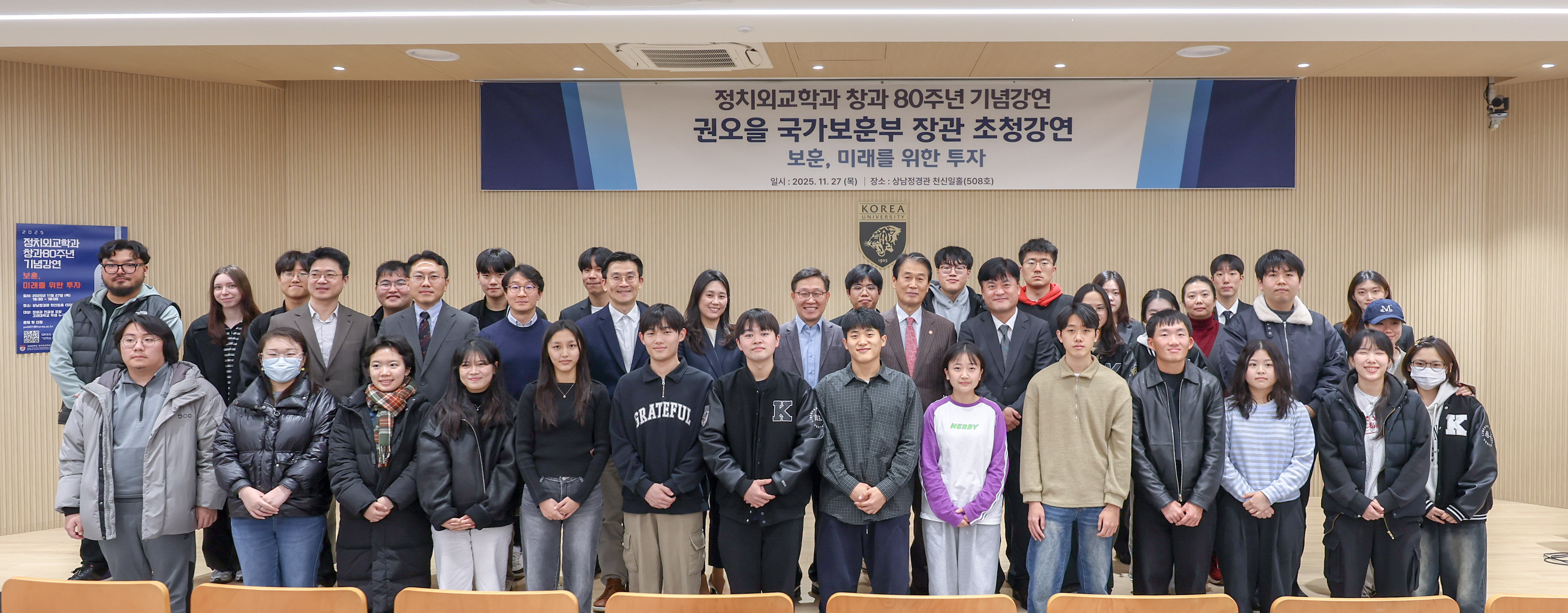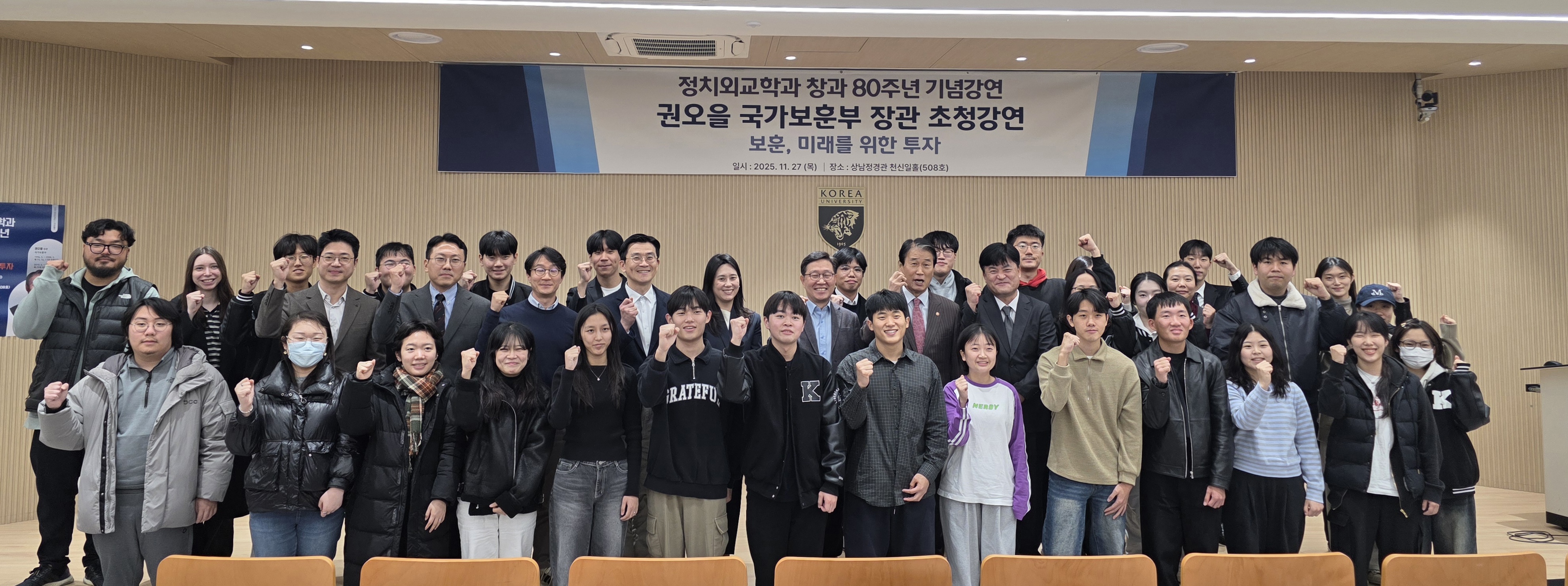지난 11월 27일(목), 정치외교학과 창립 80주년 기념 권오을 국가보훈부 장관 초청 강연이 많은 관심과 열기 속에서 성황리에 마무리되었습니다.